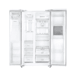 این مدل از سری یخچالهای ساید بای ساید دوو با طراحی ظاهری زیبا و رنگ سفید براق (White Glass) ارائه میشود که جلوهای تمیز، شیک و مدرن به آشپزخانه شما میبخشد. پنل لمسی LED، دستگیرههای توکار، و طراحی مینیمال، زیبایی ظاهری دستگاه را دوچندان کردهاند. فضای داخلی جادار با کشوها و طبقات شیشهای مقاوم، چیدمان مواد غذایی را سادهتر و منظمتر میکند.