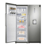 یخچال فریزر دوقلوی سام از بدنهای مقاوم با پوشش سفید ضدخش و ضدلک ساخته شده است. دربهای خوشفرم با دستگیرههای توکار، ظاهر دستگاه را یکپارچه و مدرن کردهاند. هر یک از بخشهای یخچال و فریزر دارای نمایشگر دیجیتال لمسی مجزا هستند که کنترل تنظیمات را آسانتر میکنند. فضای داخلی با طبقات شیشهای حرارتدیده و کشوهای بزرگ و عمیق طراحی شده تا استفاده از فضا بهینه شود. چراغهای LED نیز روشنایی یکنواخت و زیبایی به داخل دستگاه میبخشند.